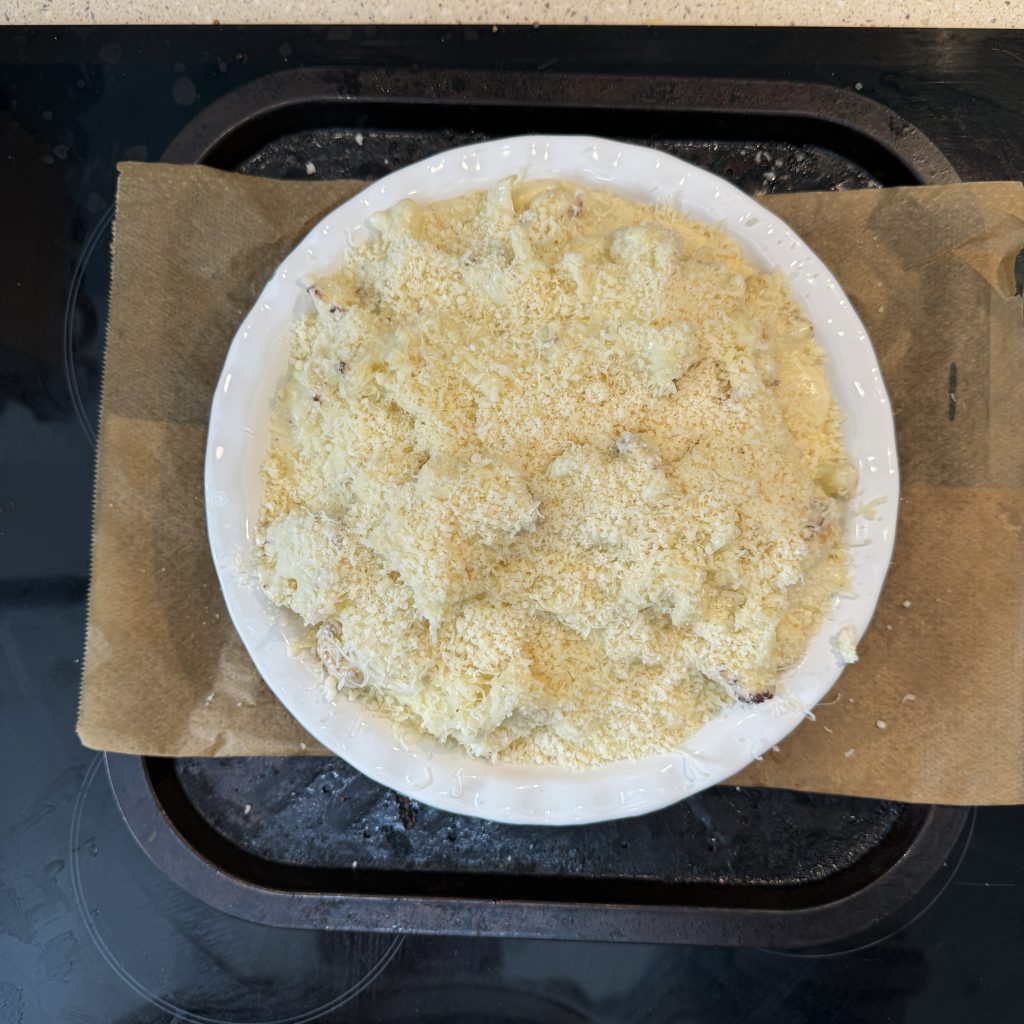 - Add roasted cauliflower to cheese sauce, mix through and transfer into oven proof dish for baking (or freezer safe oven-proof dish). Sprinkle 50 g parmesan on top. See Notes.